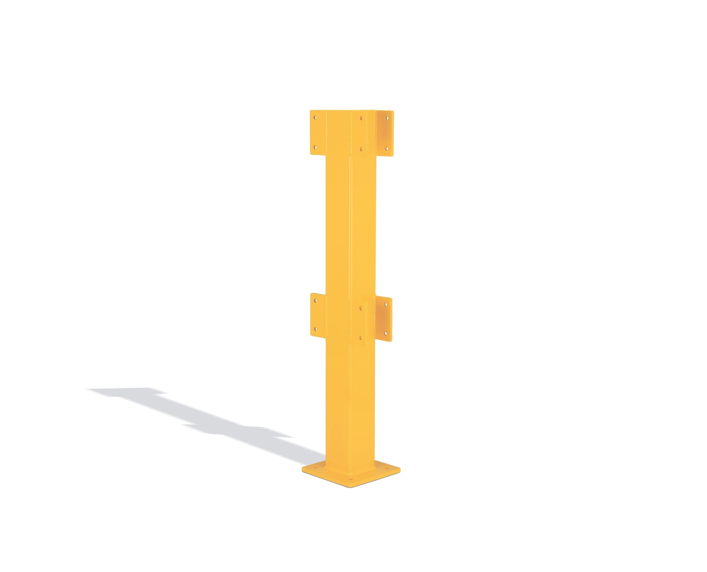 Teräksestä valmistettu turvakaide jalankulkualueiden rajaamiseen, koneiden ja laitteiden suojaamiseen tehtaissa ja varastoissa. Modulaarinen rakenne mahdollistaa kaikenlaiset layout-ratkaisut. Turvakaide on saatavana 100, 150 tai 200 cm pitkillä kaiteilla ja 100 cm korkeilla pääty-, kulma- ja keskitolpilla. Jokaista tolppaväliä kohden tulee kaksi kaidetta. Saatavana on useita eri kaidepituuksia 100-200 cm välillä. Keskitolppien avulla turvakaidetta voidaan jatkaa rajattomasti ja kulmatolpilla voit tehdä 90 asteen kulmia. Voidaan varustaa portilla. Asennus pulttaamalla lattiaan. Kiinnikkeet sisältyvät toimitukseen. Pulverimaalattu keltaiseksi RAL 1023.