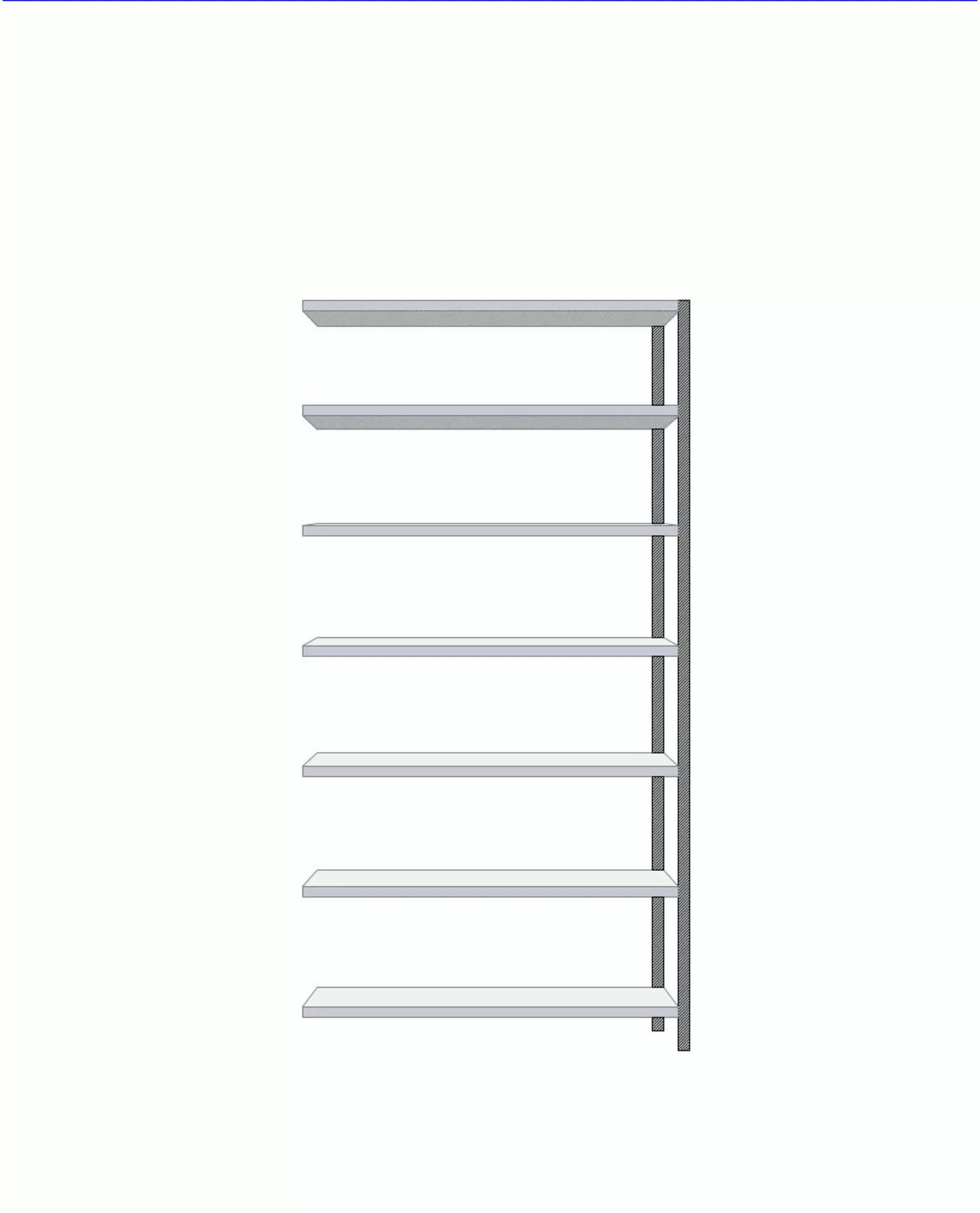 Jatko-osa 2295 mm korkea: 2 pylvästä, aluslevyt, tukilevyt, 7 hyllytasoa ja kannattimet.