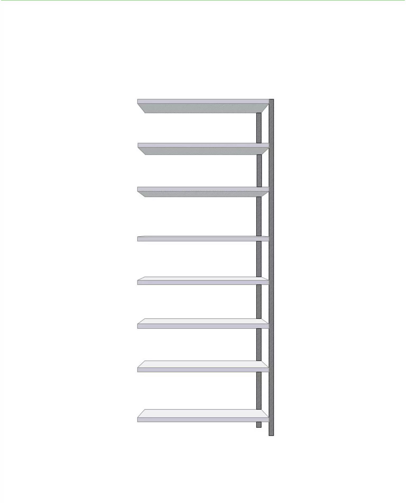 Jatko-osa 2480 mm korkea: 2 pylvästä, aluslevyt, tukilevyt, 8 hyllytasoa ja kannattimet.