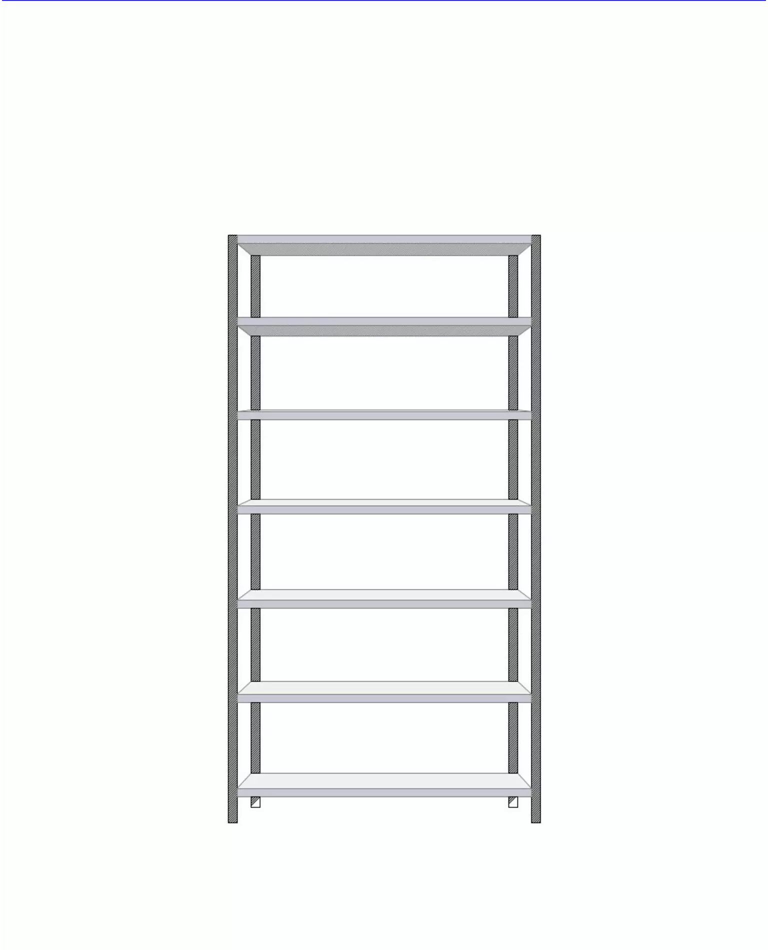Perusosa 2295 mm korkea: 4 pylvästä, aluslevyt, tukilevyt, 7 hyllytasoa ja kannattimet.