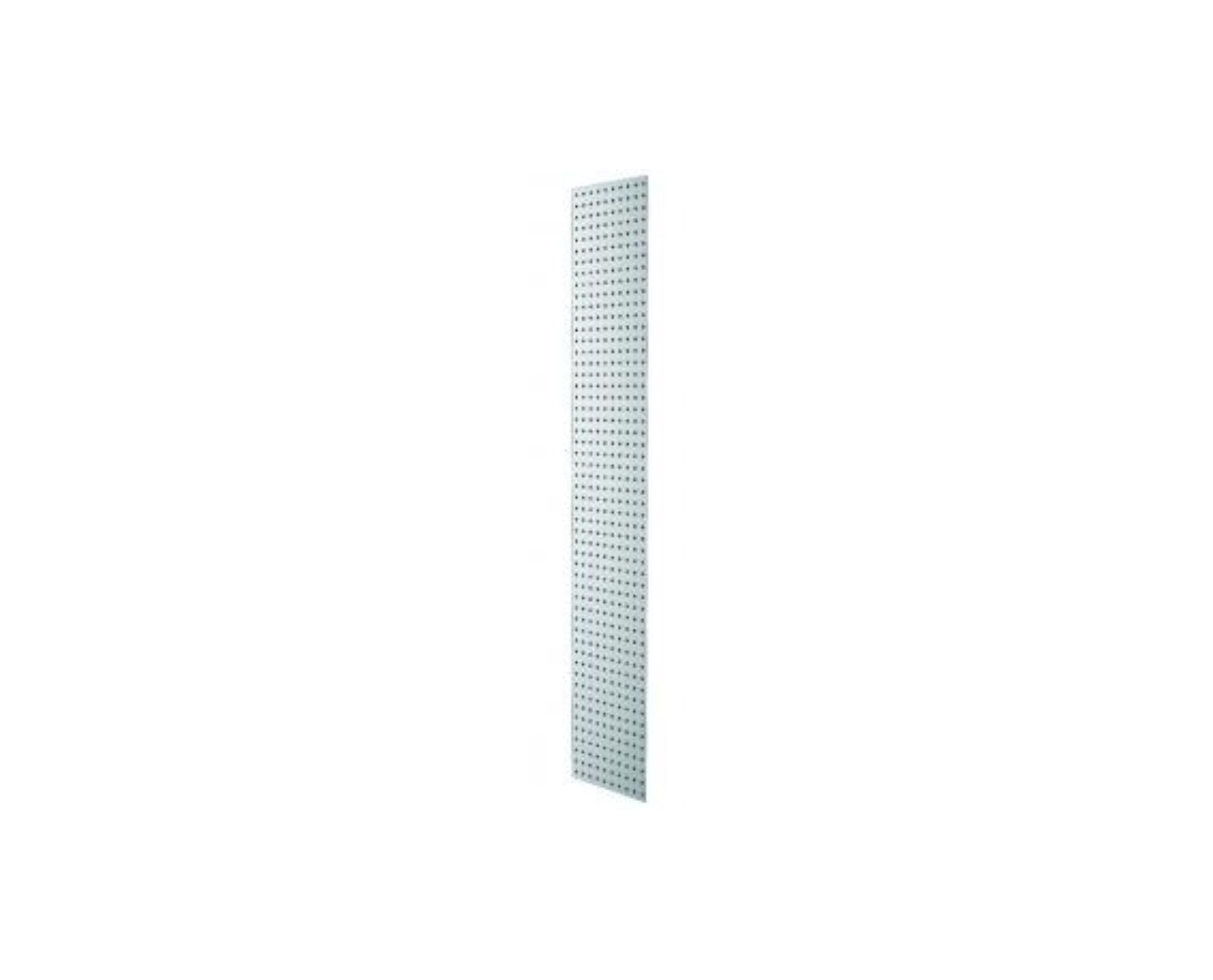 Reikälevypääty 600 mm syvään Hi280 hyllystön päätyyn. Vaaleanharmaata terästä.