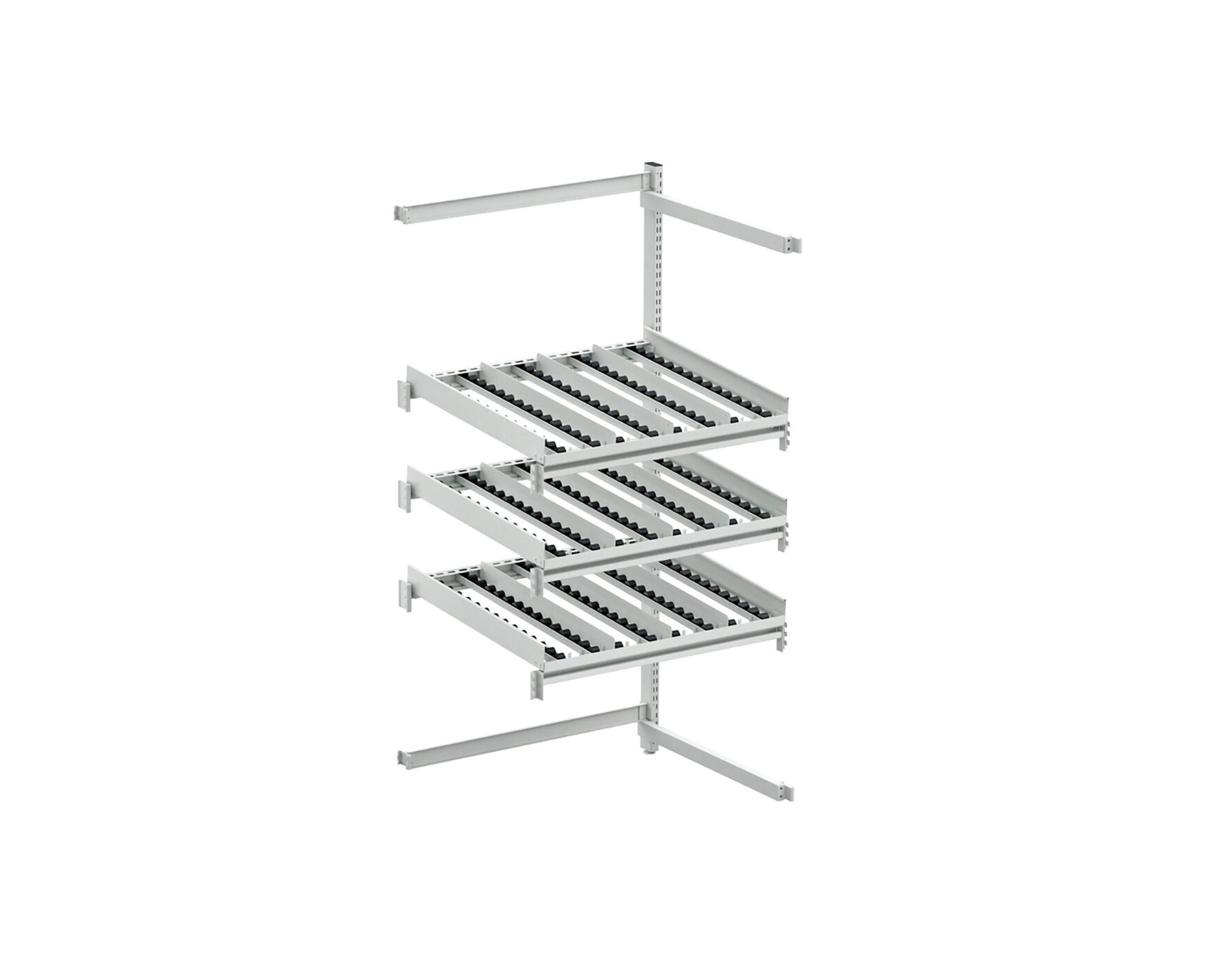 Läpivirtaushyllyn sivu-takajatkeella tuplaat helposti sivujatkeen varastotilan.Sisältää 3 rullakkotasoa, jotka ovat säädettävissä ilman työkaluja.